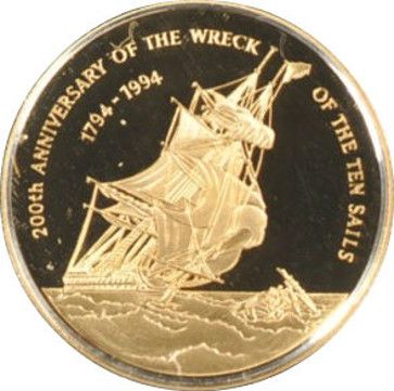 50 доларів — Єлизавета II (Десять вітрил) 1994 – 1994 Кайманові острови