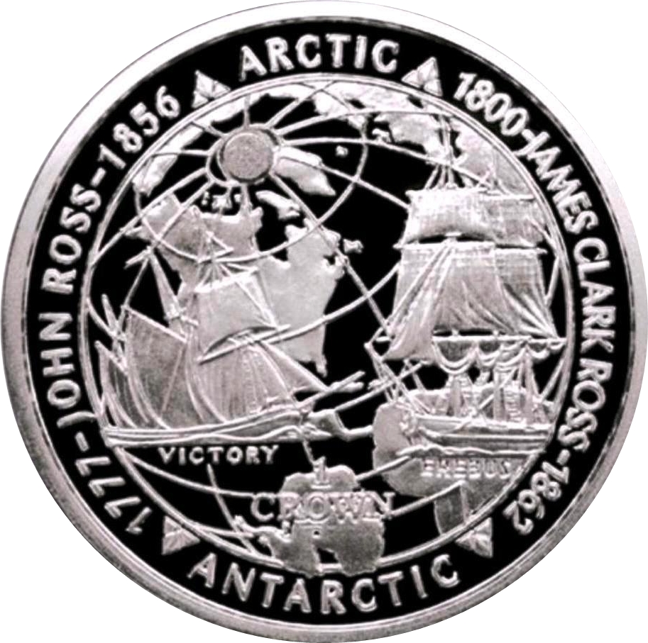 Назва: 1 крона — Єлизавета II (Джон Росс і Джеймс Кларк Росс; срібна пробна монета)