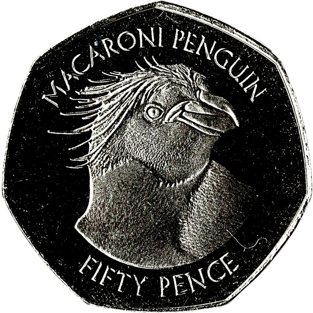 50 пенсів — Єлизавета II (макаронний пінгвін) 2018 – 2021 Фолклендські острови