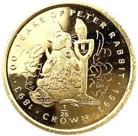 1⁄25 крона — Єлизавета II (Кролик Пітер — 100 років) 1993 – 1993 Гібралтар