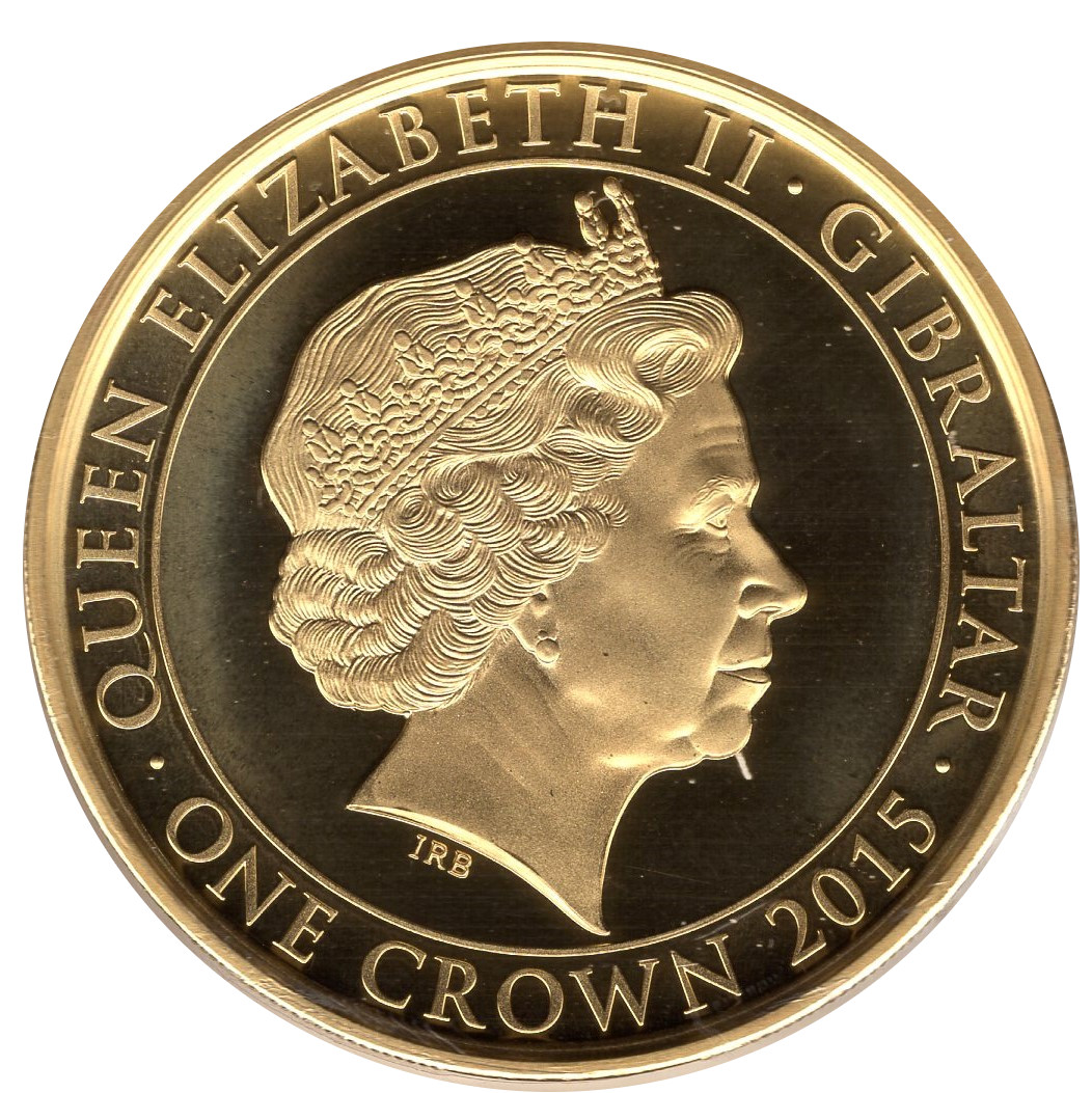 1 крона — Єлизавета II (Сер Вінстон Черчилль; позолочена) 2015 – 2015 Гібралтар