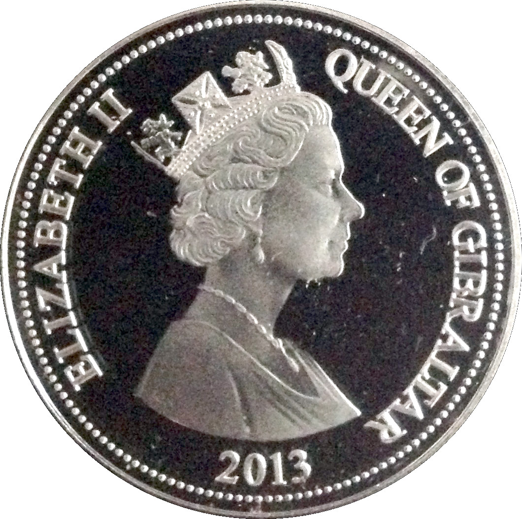1 крона — Єлизавета II (Утрехтський договір; срібна проба) 2013 – 2013 Гібралтар