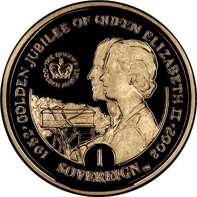 Назва: 1 суверен — Єлизавета II (Золотий ювілей — верхівки дерев у Кенії)
