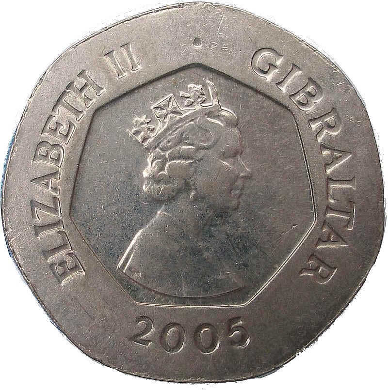 20 пенсів — Єлизавета II (Ключі Гібралтару) 2005 – 2011 Гібралтар