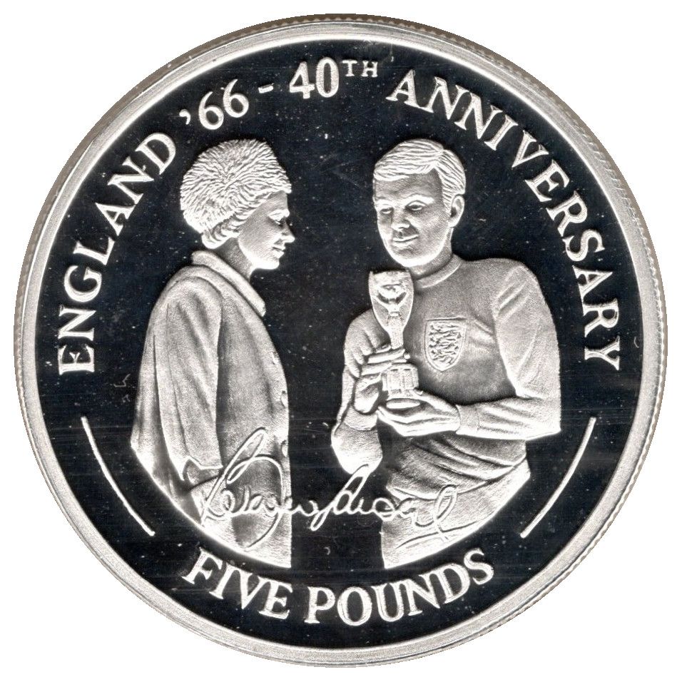 5 фунтів — Єлизавета II (Англія, 1966 р. — королева та Боббі Мур) 2006 – 2006 Гібралтар
