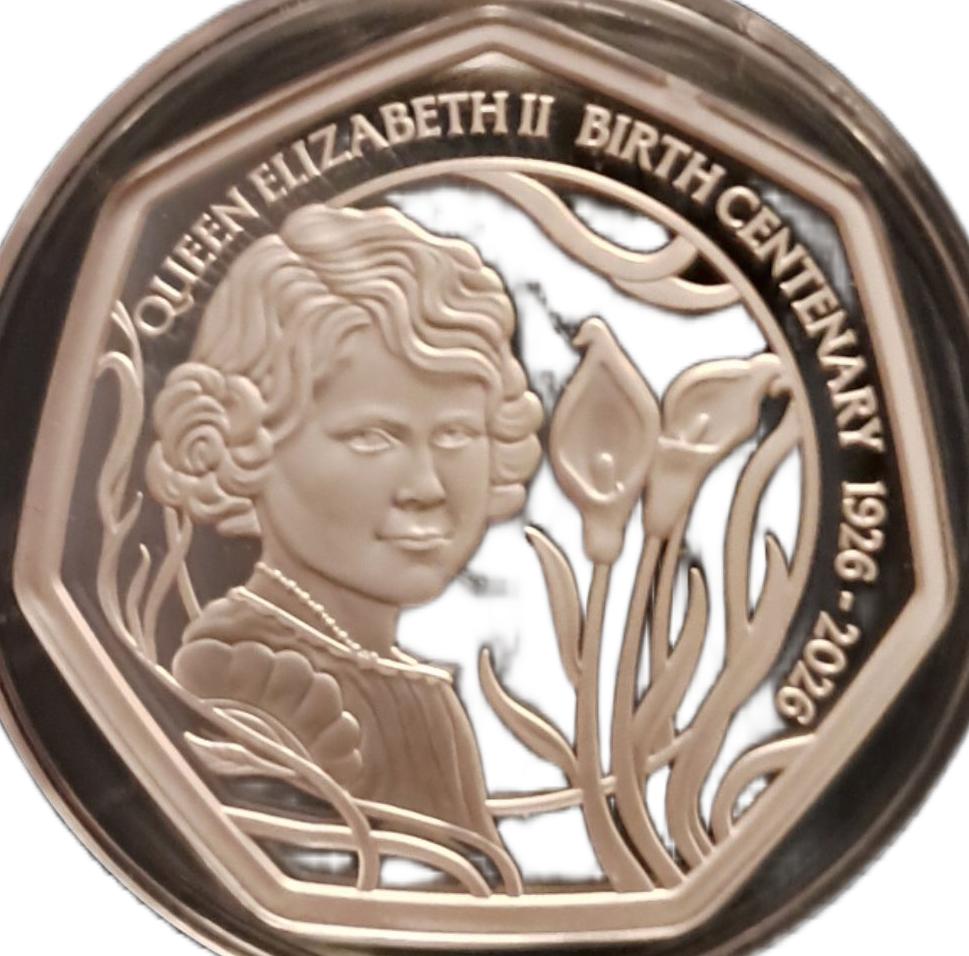 Опис: «Молода принцеса» 50 пенсів — монета з першим у історії портретом принцеси Єлизавети в дитинстві, автор — Аріанна Чікконі