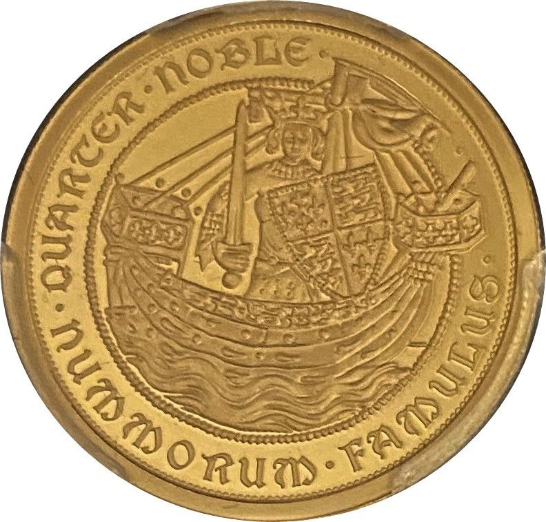 Опис: На монеті зображений король Едуард, який стоїть, тримаючи меч і щит. Він стоїть на кораблі.