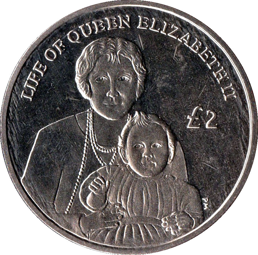 Назва: 2 фунти (Діамантовий ювілей — королева-мати з немовлям Єлизаветою II)