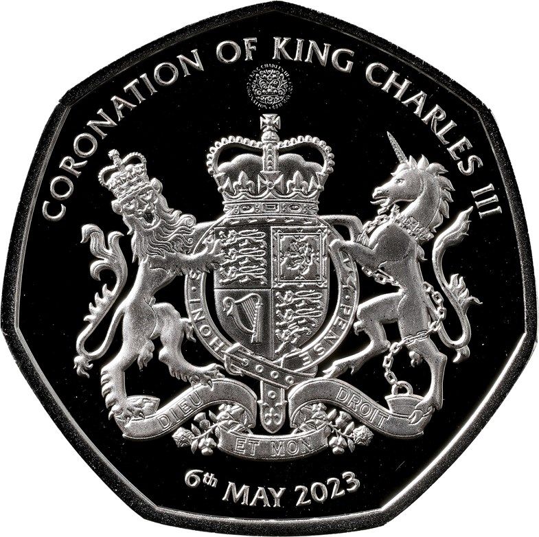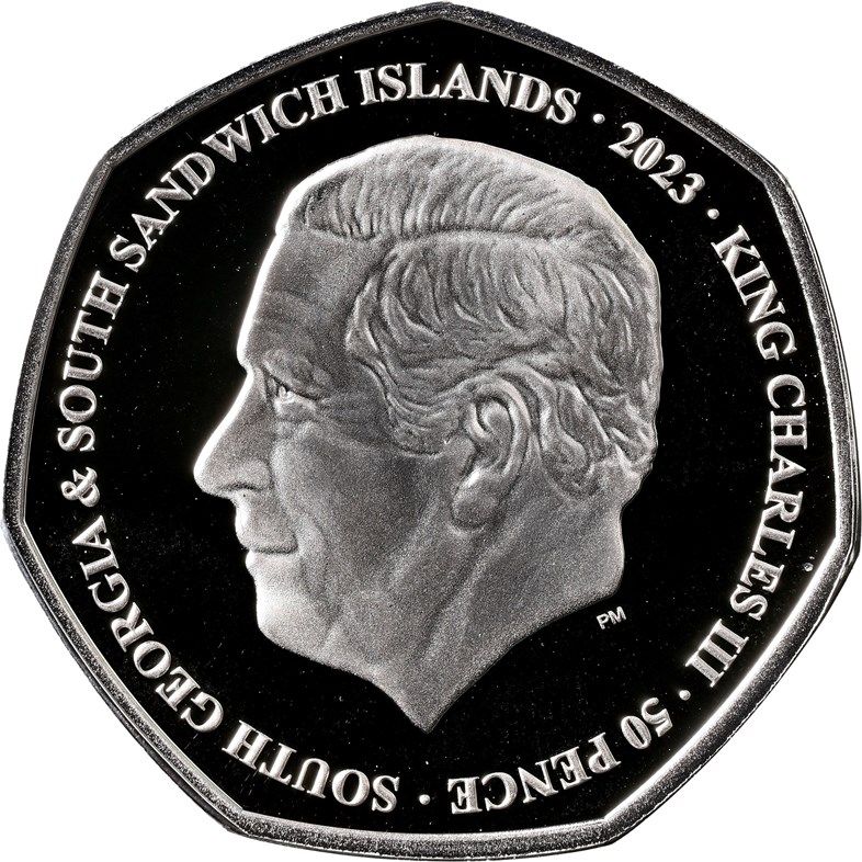 50 пенсів — Карл III (королівський герб; срібна монета) 2023 – 2023 Південна Джорджія та Південні Сандвічеві острови