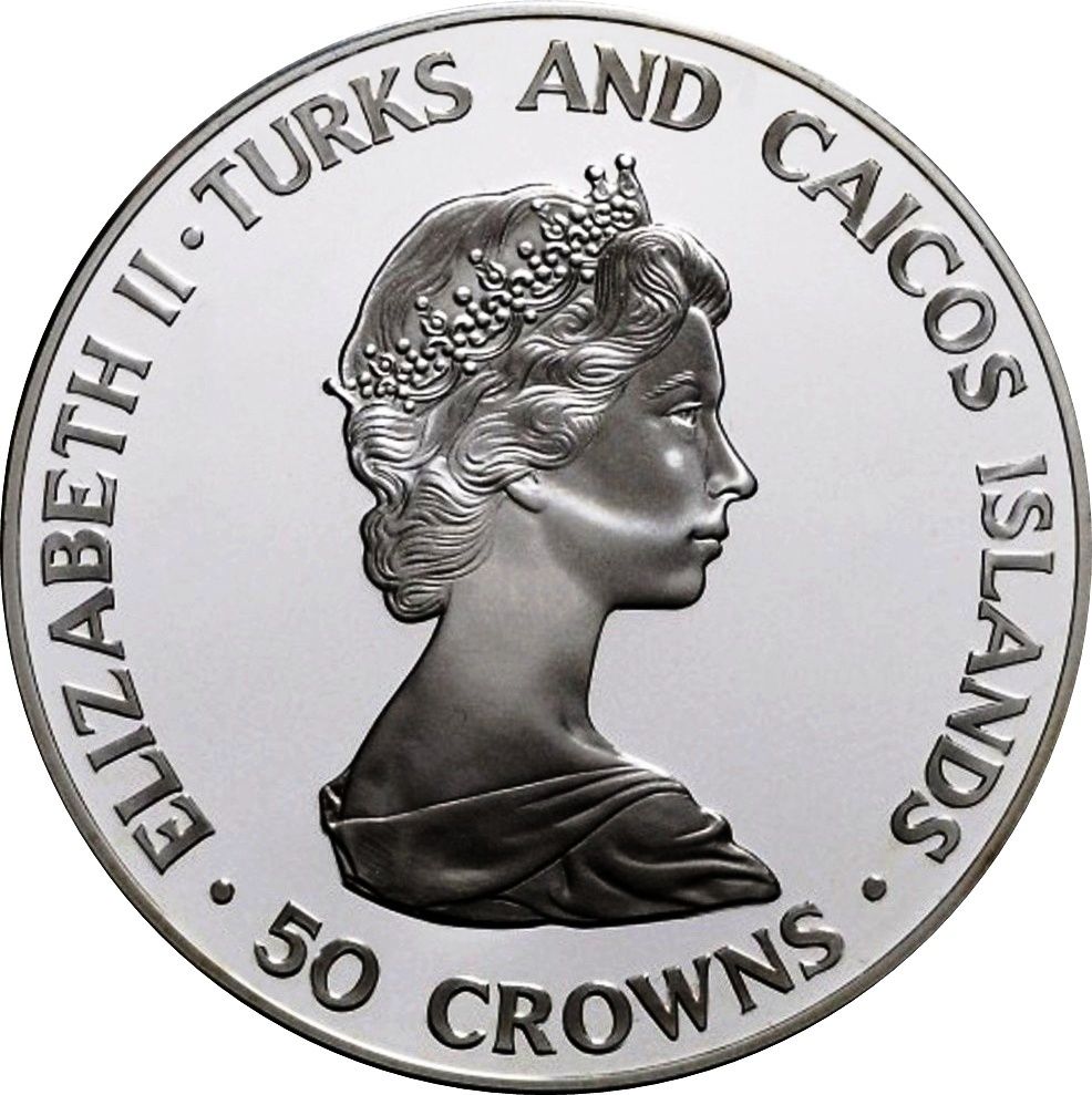 50 крон — Єлизавета II (Подорож відкриттів) 1986 – 1986 Острови Теркс і Кайкос