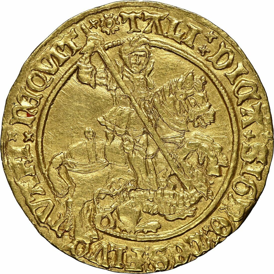 Опис: Святий Георгій на коні, що проколює дракона списом.