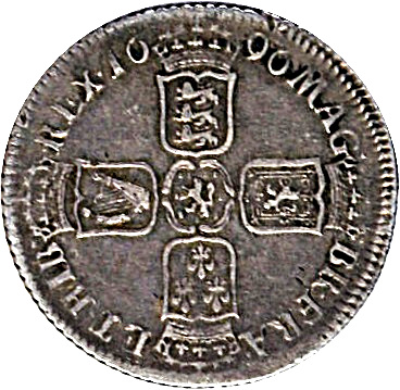 Опис: Перший лауреат і драпірований бюст короля Вільяма III праворуч, навколо напис. Примітка: марка монетного двору Y під бюстом.