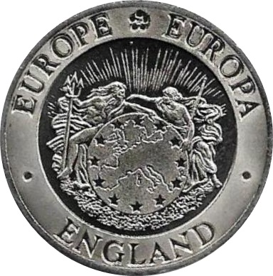 Опис: Нептун і Європа оточують земну кулю, обкляту 12 п'ятикутними зірками, на якій зображено карту Європи. По краю монети нанесено напис, а між словами «Europe» і «Europa» розміщено невеликий квітковий мотив.