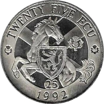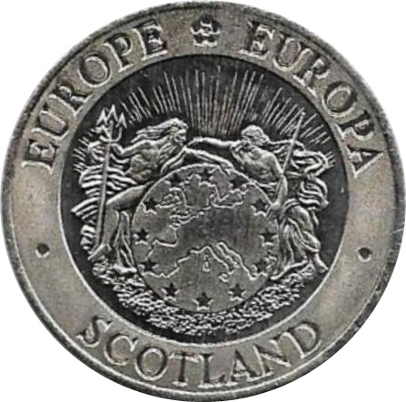 Опис: Нептун і Європа оточують земну кулю, обкляту 12 п'ятикутними зірками, на якій зображено карту Європи. На краю монети розміщено напис, а між словами «Europe» і «Europa» — невеликий квітковий мотив.