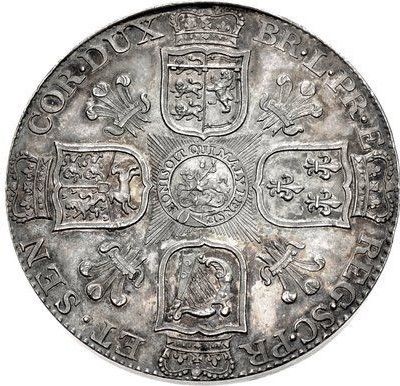 Опис: Голова без головного убору, в мантії та обладунках, бюст Георга IV як принца Уельського та верховного стюарда Шотландії.
