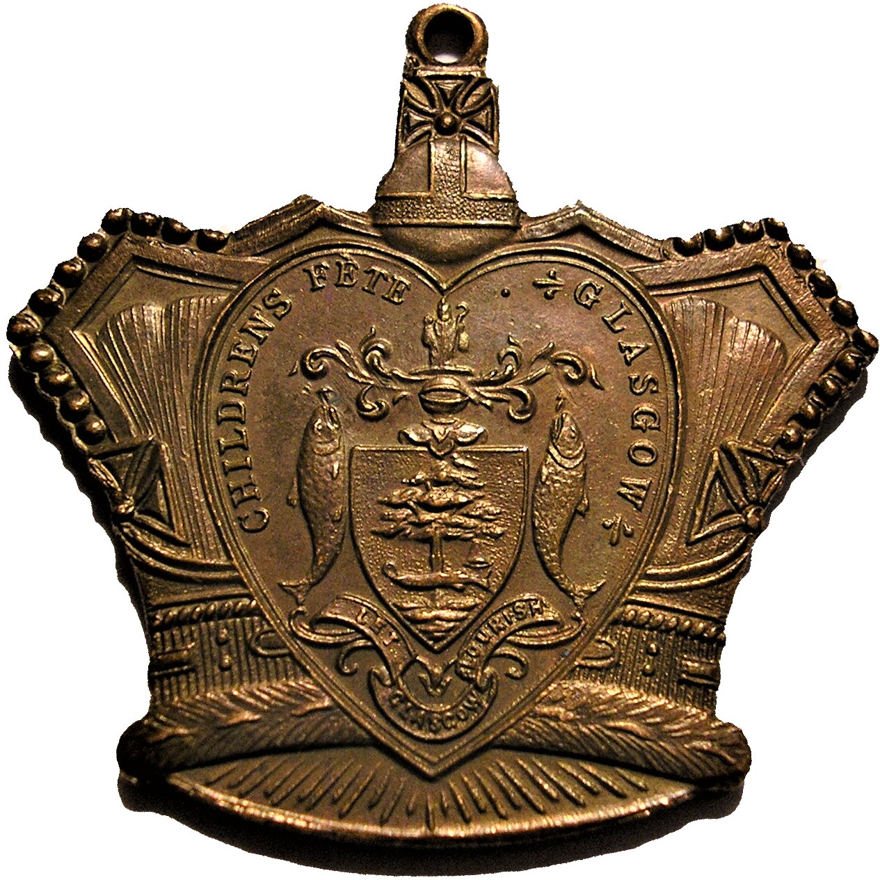 Опис: У центрі, всередині серцеподібного малюнка, зображено герб Глазго з його девізом.