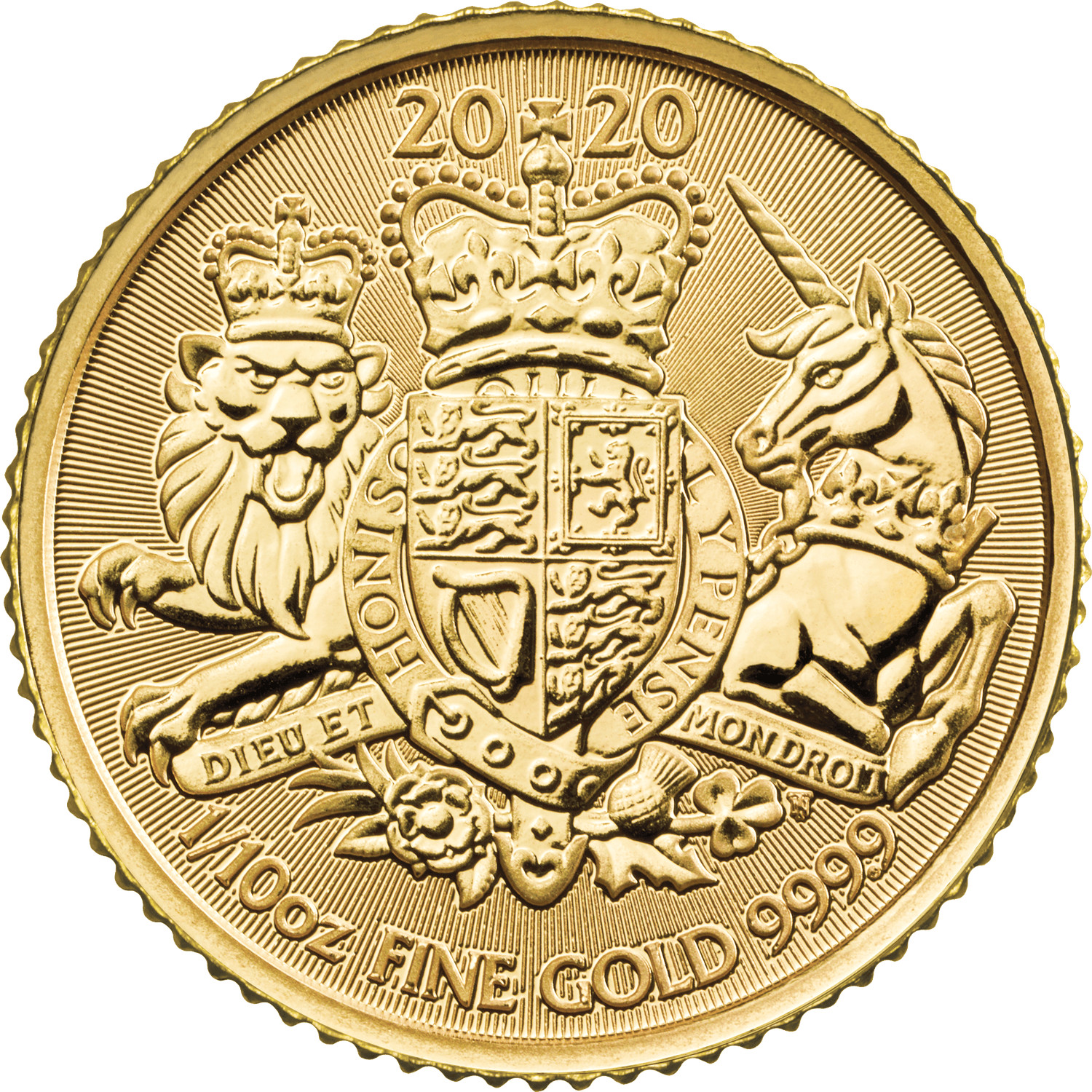 10 фунтів — Єлизавета II (королівський герб; 1/10 унції чистого золота)