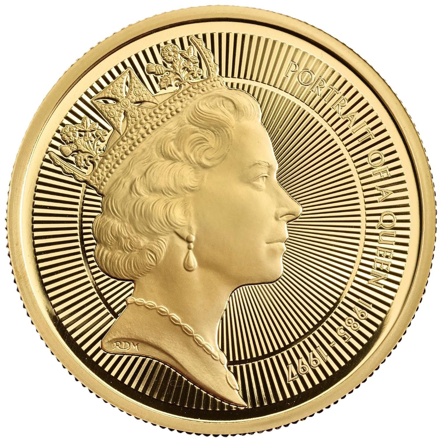 Назва: 200 фунтів — Карл III (Королева Єлизавета II: портрет Рафаеля Маклуфа; золота монета Proof)