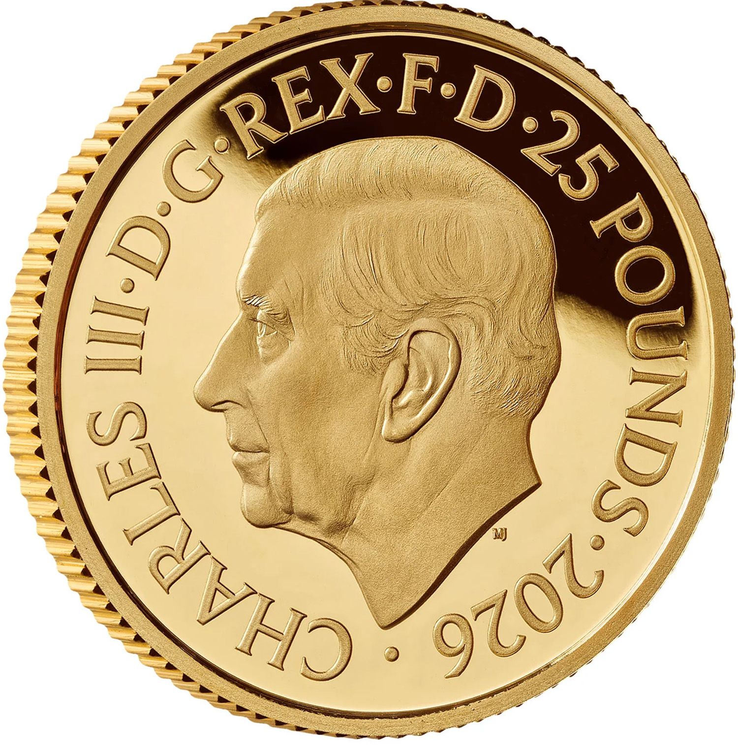 Назва: 25 фунтів — Карл III (1/4 унції чистого золота)