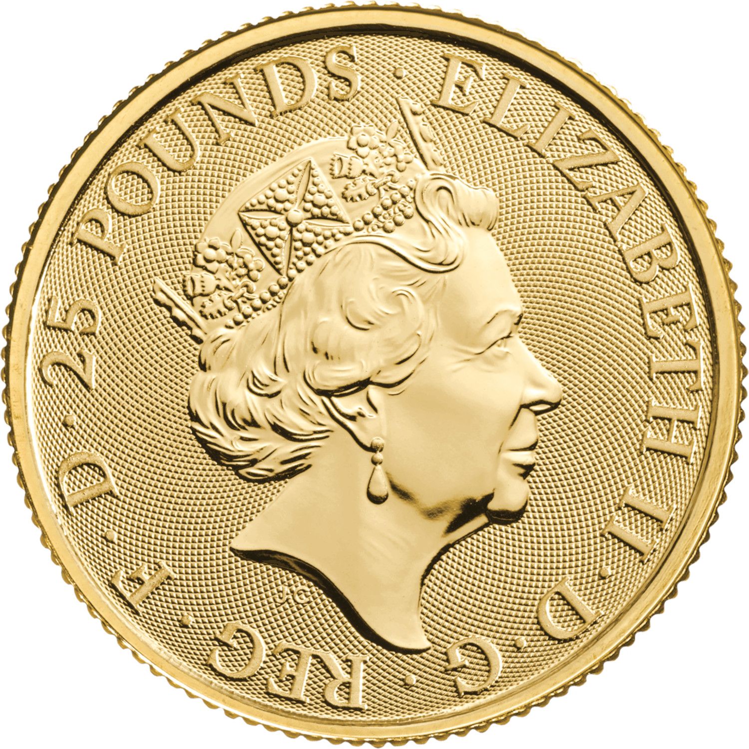 25 фунтів — Єлизавета II (Лев Англії; 1/4 унції чистого золота)