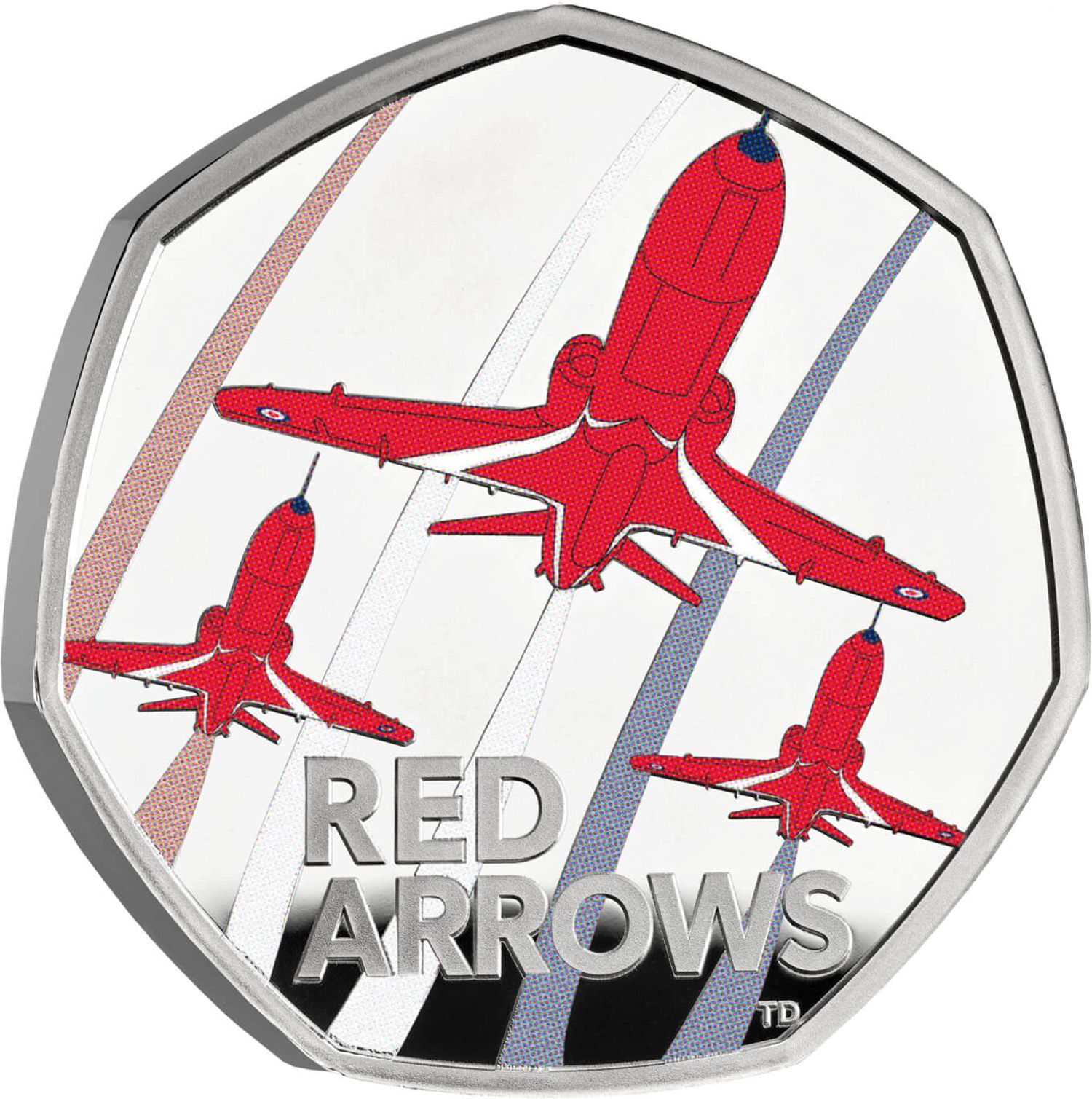 Назва: 50 пенсів — Чарльз III (Red Arrows; срібна пробна монета)