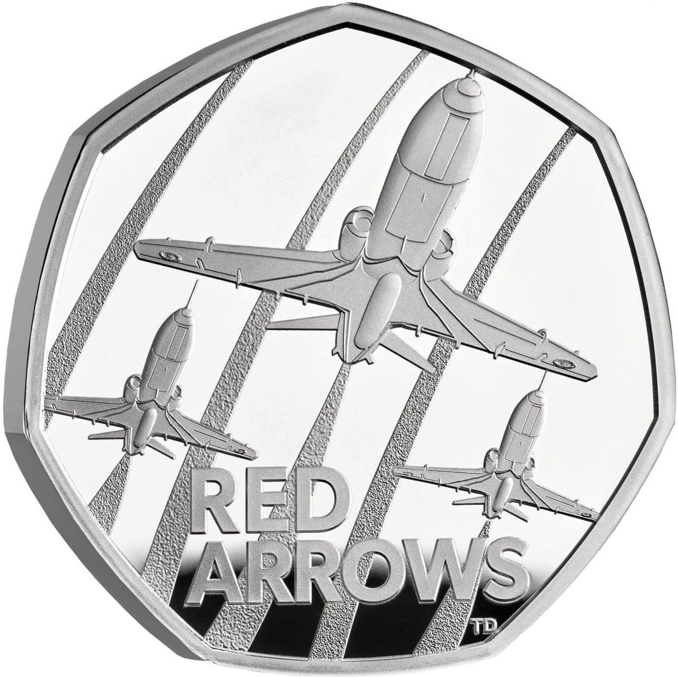Назва: 50 пенсів — Чарльз III (Red Arrows; срібна пробна монета)