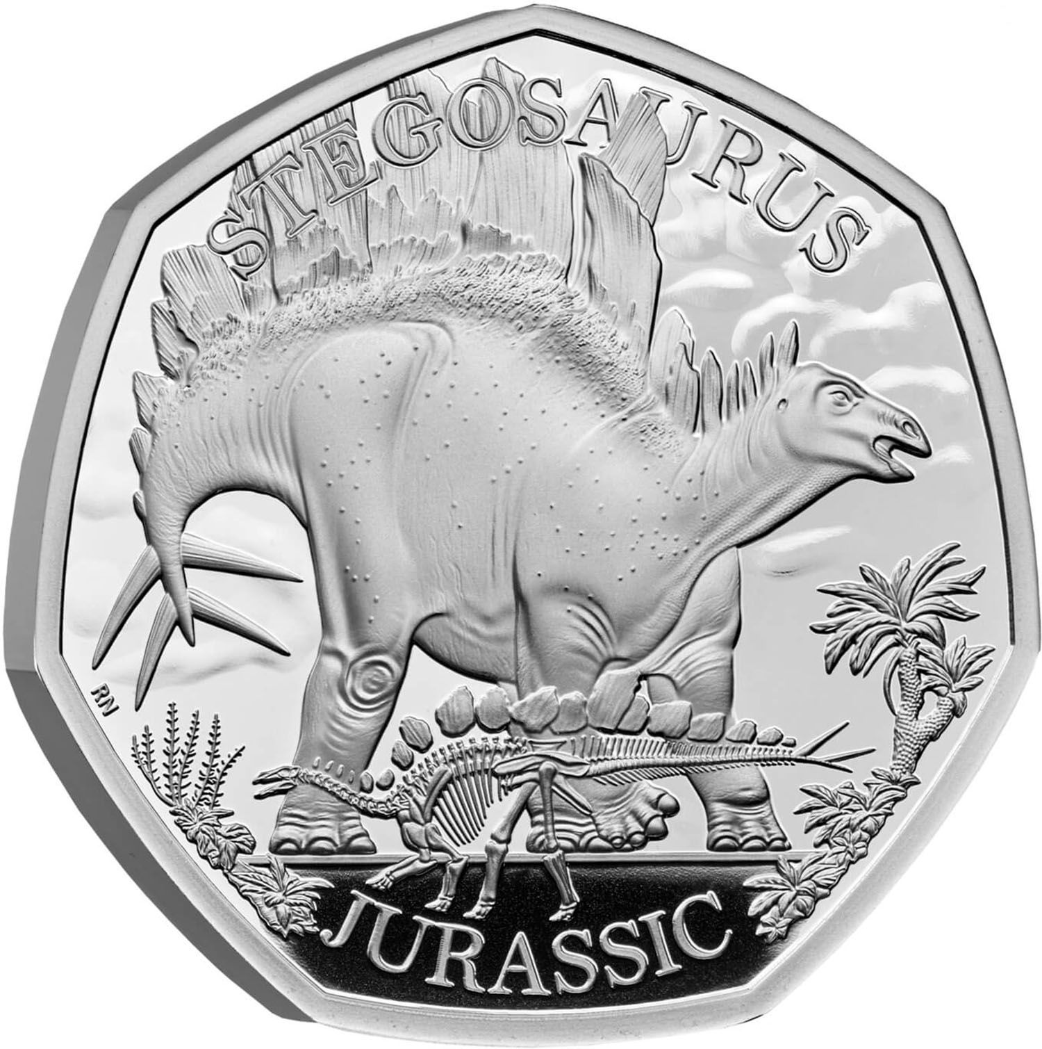 Назва: 50 пенсів — Карл III (стегозавр; срібна пробна монета)