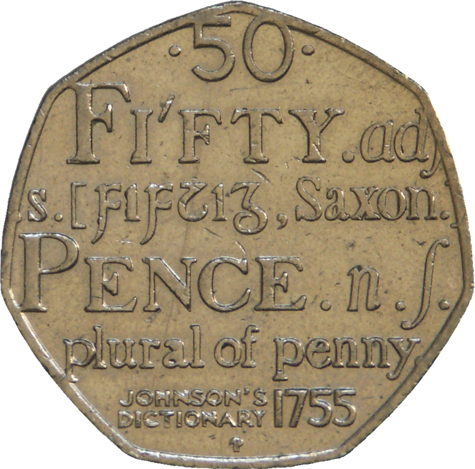 50 пенсів — Єлизавета II (4-й портрет; Словник Джонсона)