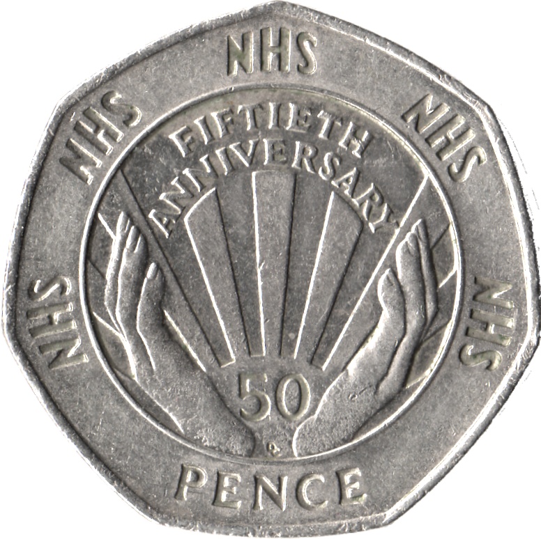 50 пенсів — Єлизавета II (4-й портрет; 50-річчя NHS)