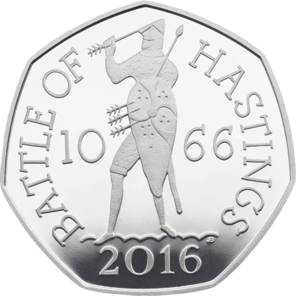 50 пенсів — Єлизавета II (Битва при Гастінгсі; срібна пробна монета)