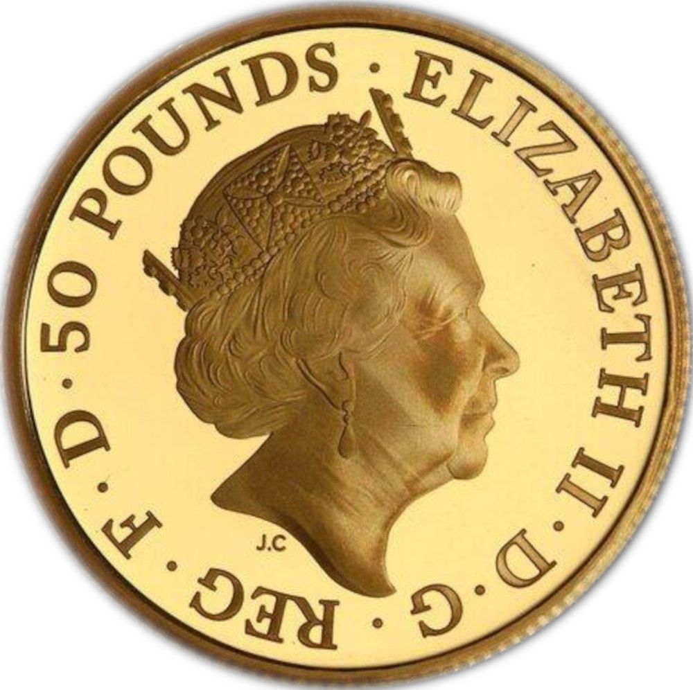 50 фунтів — Єлизавета II (5-й портрет; 1/2 унції чистого золота)