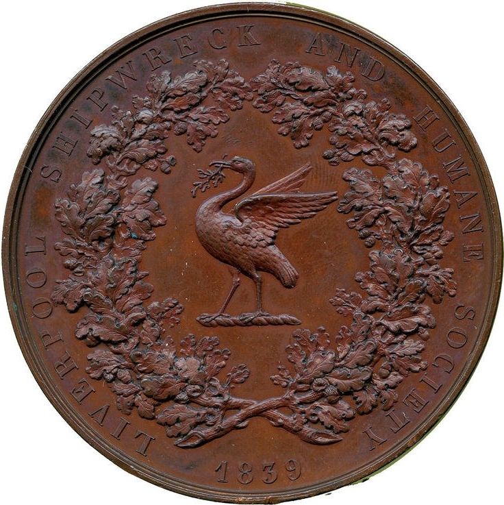 Нагорода (Ліверпульське товариство порятунку кораблів і гуманітарне товариство; бронза) 1839 – 1839 Велика Британія
