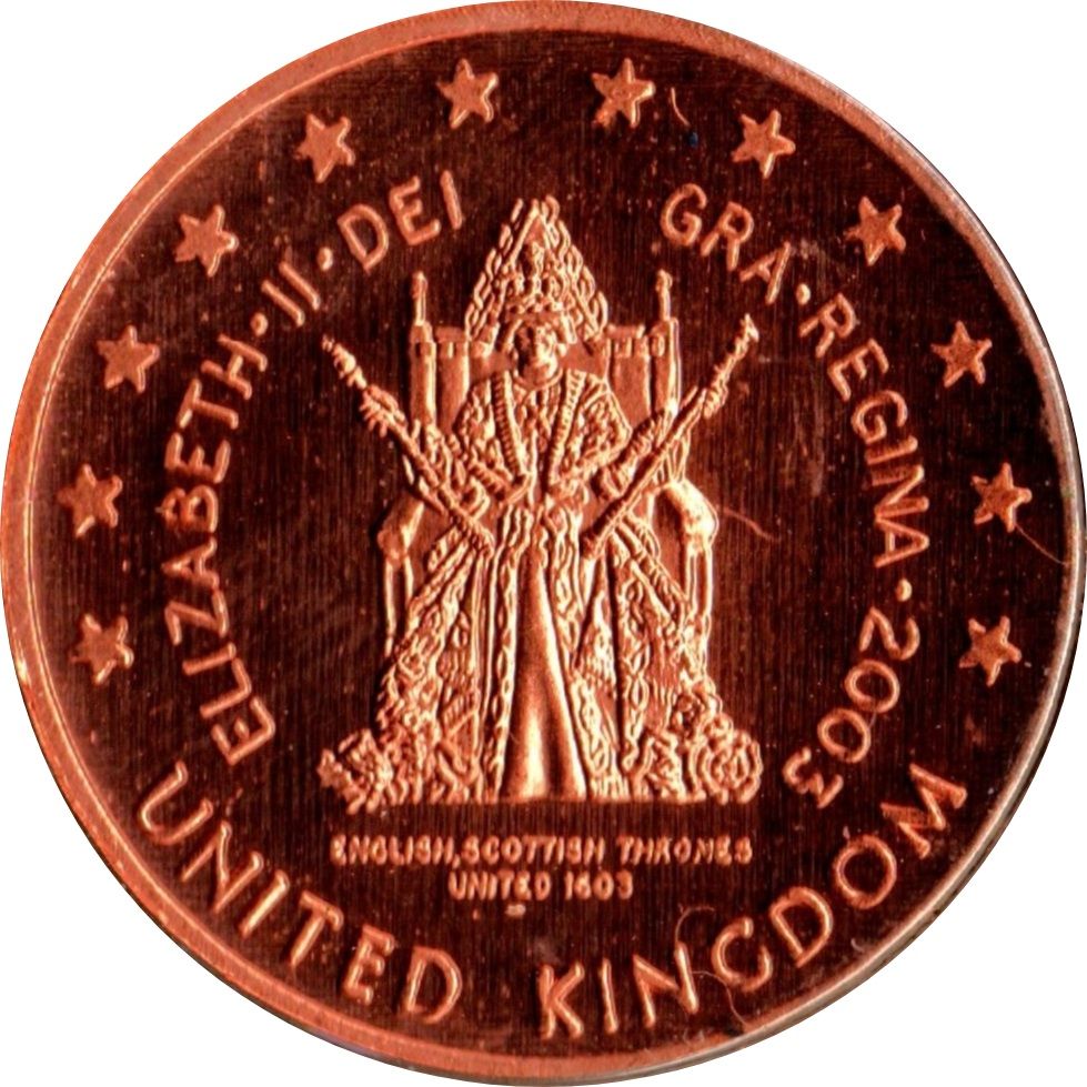 Опис: Коронований монарх Сполученого Королівства з трояндою внизу праворуч і чортополохом внизу ліворуч.
