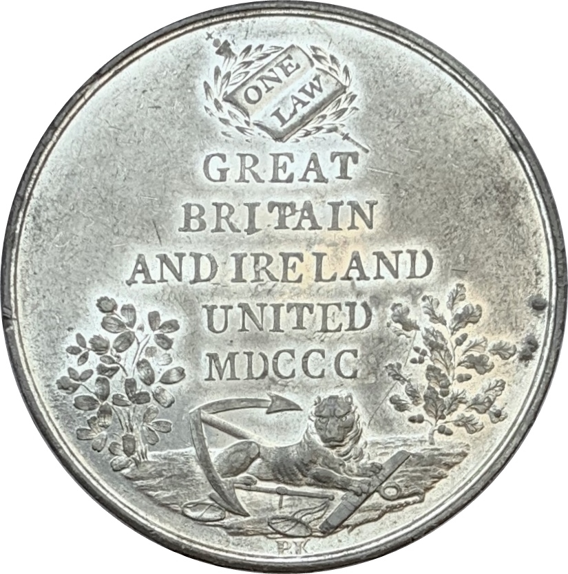 Медаль — Акти про об'єднання Великої Британії та Ірландії (білий метал) 1800 – 1800 Велика Британія