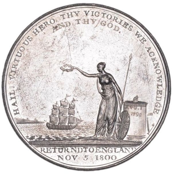 Медаль — адмірал лорд Нельсон (Повернення до Англії; білий метал) 1800 – 1800 Велика Британія