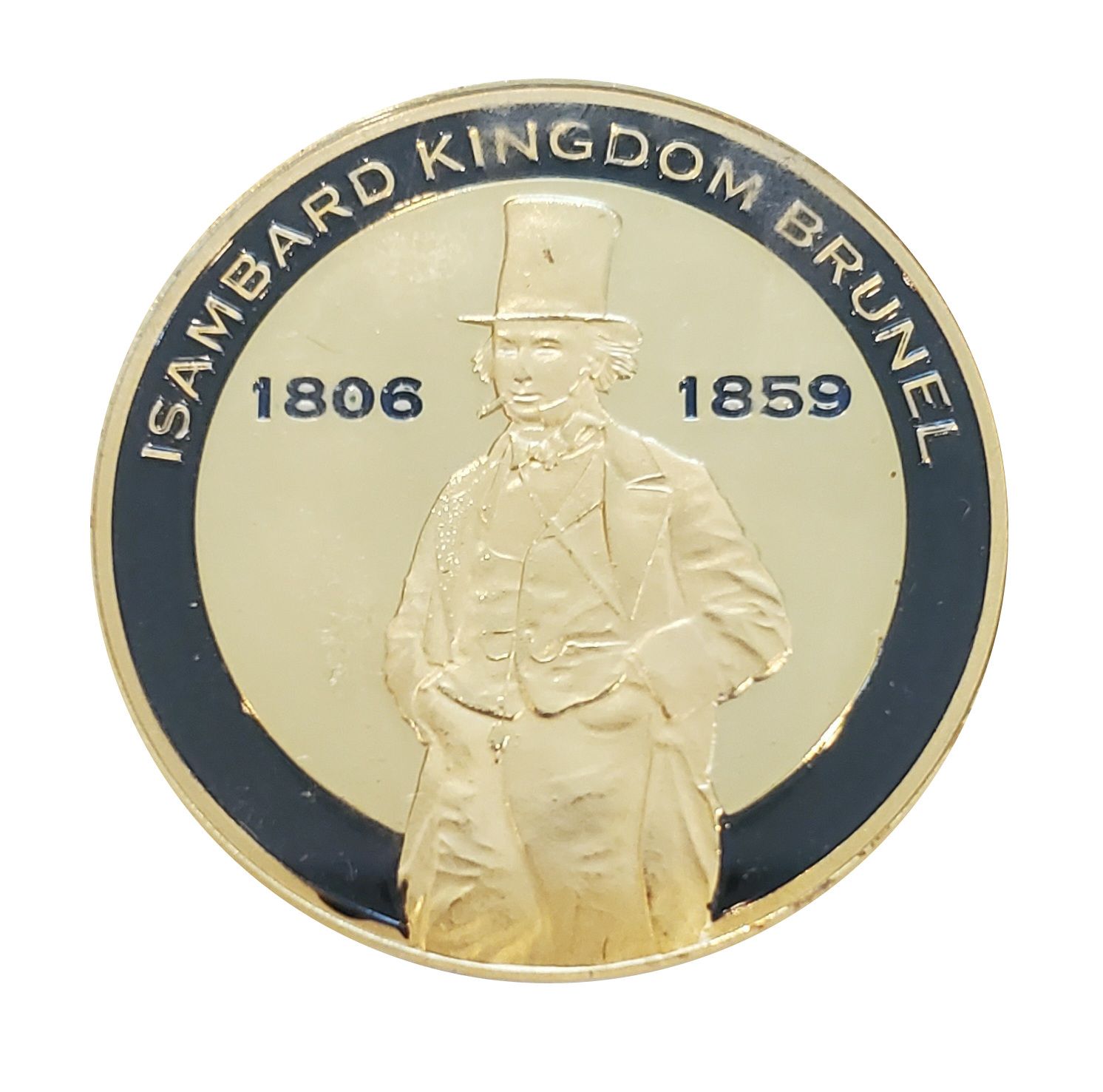 Опис: На золотому центральному полі зображено Ісамбарда Кінгдома Брунеля та роки його народження і смерті. Чорне кільце навколо центрального поля містить його ім'я.