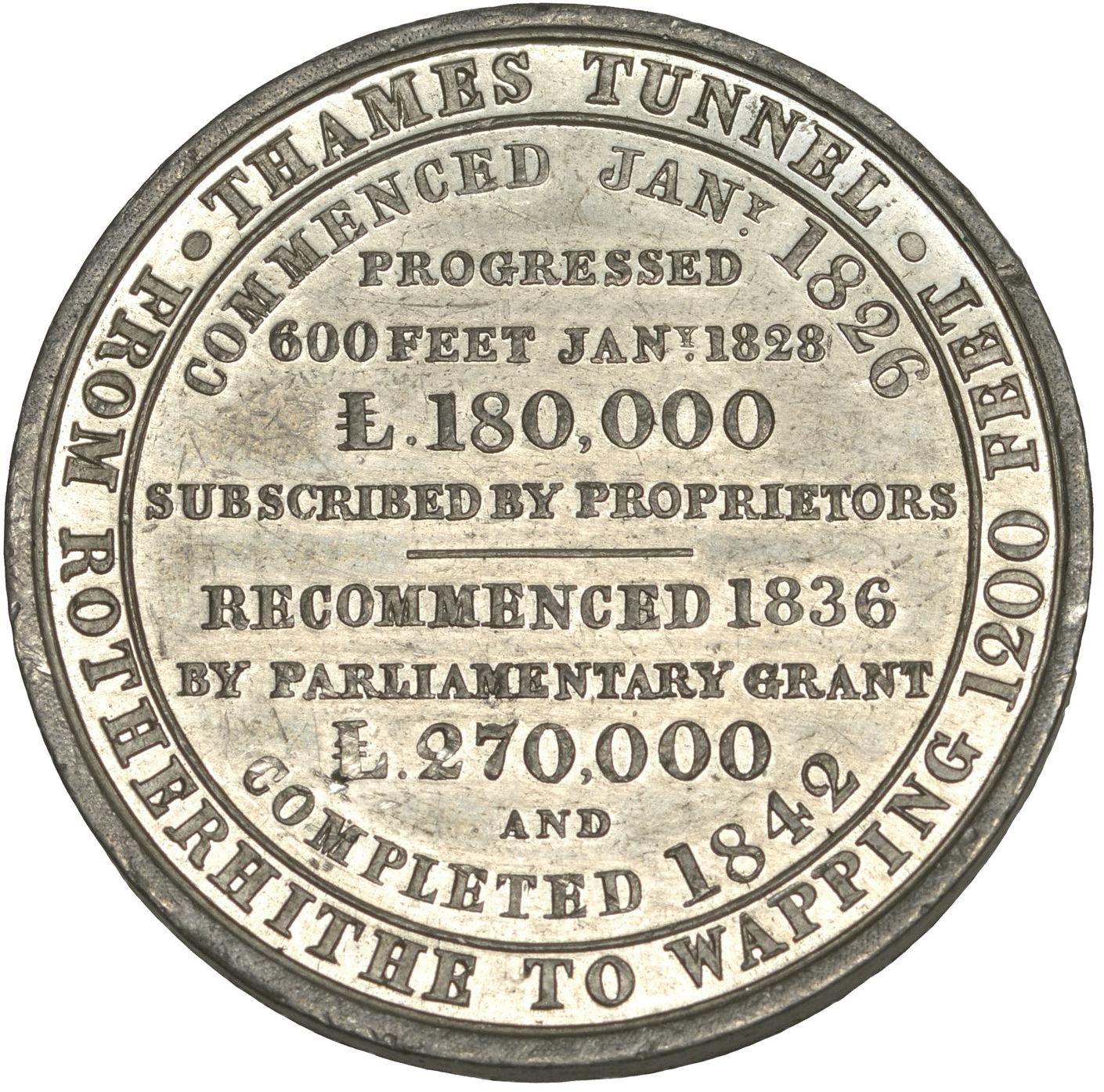 Назва: Медаль — Завершення будівництва тунелю під Темзою (білий метал)