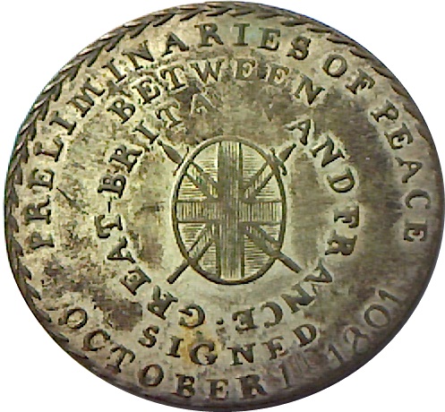 Медаль — Попередні умови Ам'єнського миру (посріблена латунь) 1801 – 1801 Велика Британія