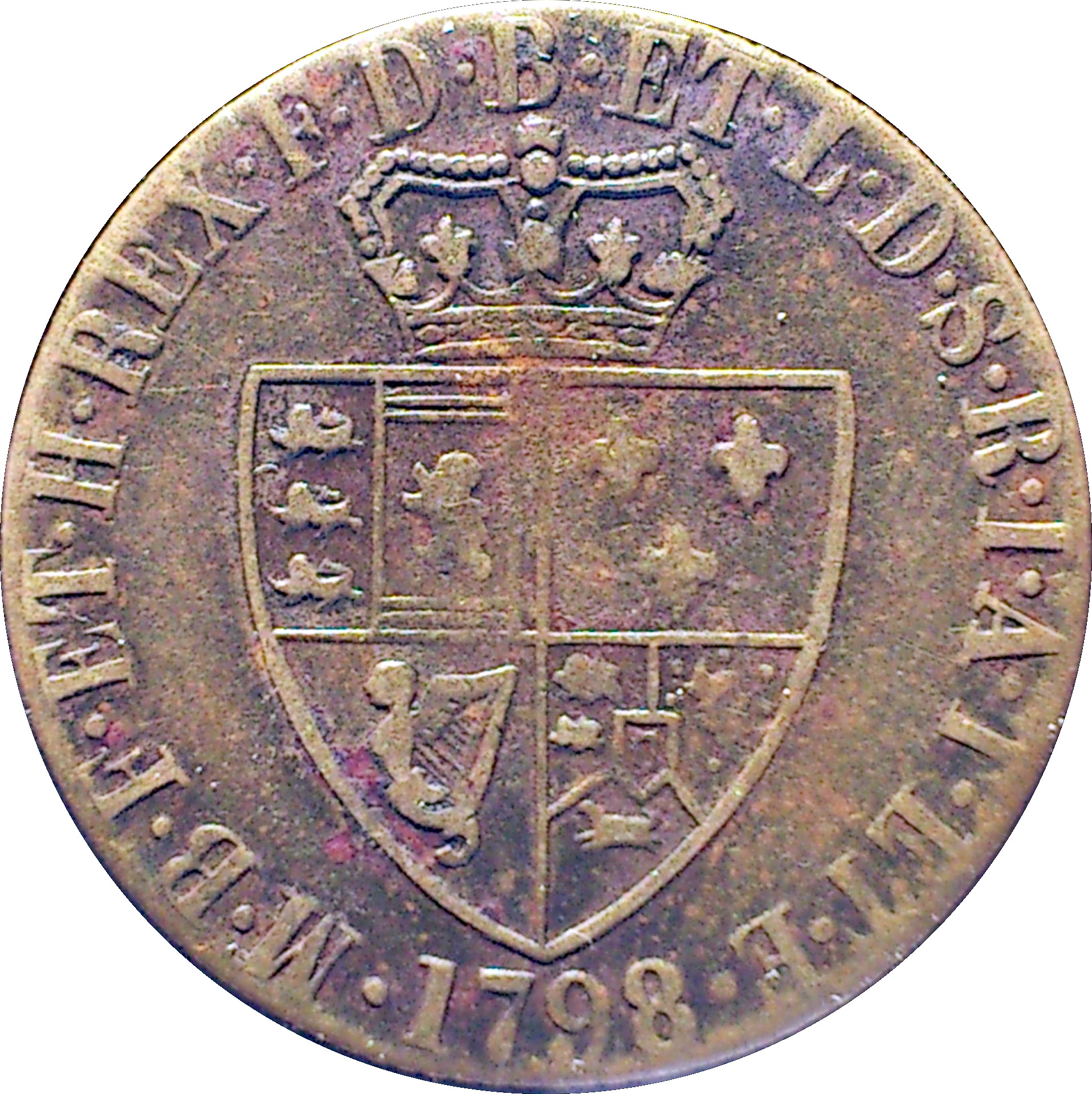 Опис: Голова Георга III в лавровому вінку праворуч. Напис навколо, без облямівки.