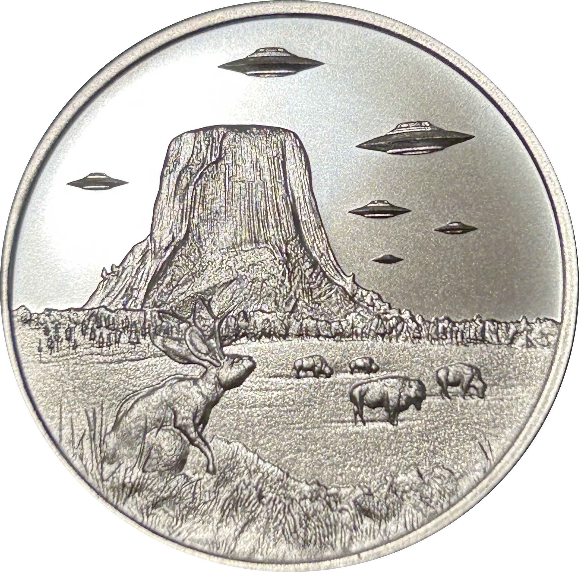 1 унція — Інтагліо Мінт (НЛО над Девілс-Тауер) 2023 – 2023 Сполучені Штати
