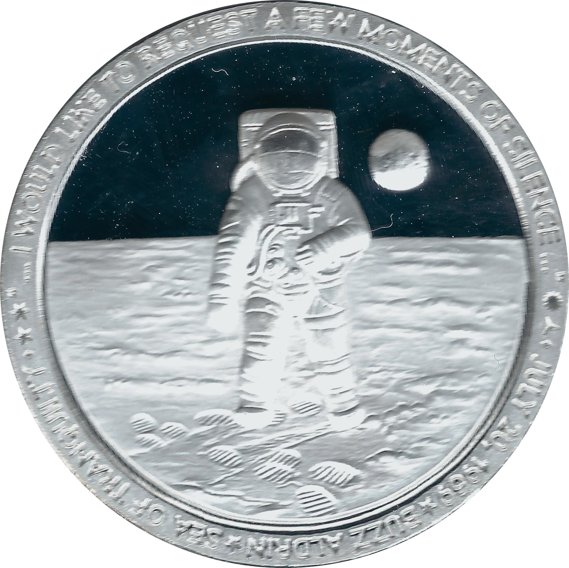 JULY 20, 1969 BUZZ ALDRIN SEA OF TRANQUILITY "... I WOULD LIKE TO REQUEST A FEW MOMENTS OF SILENCE ..."