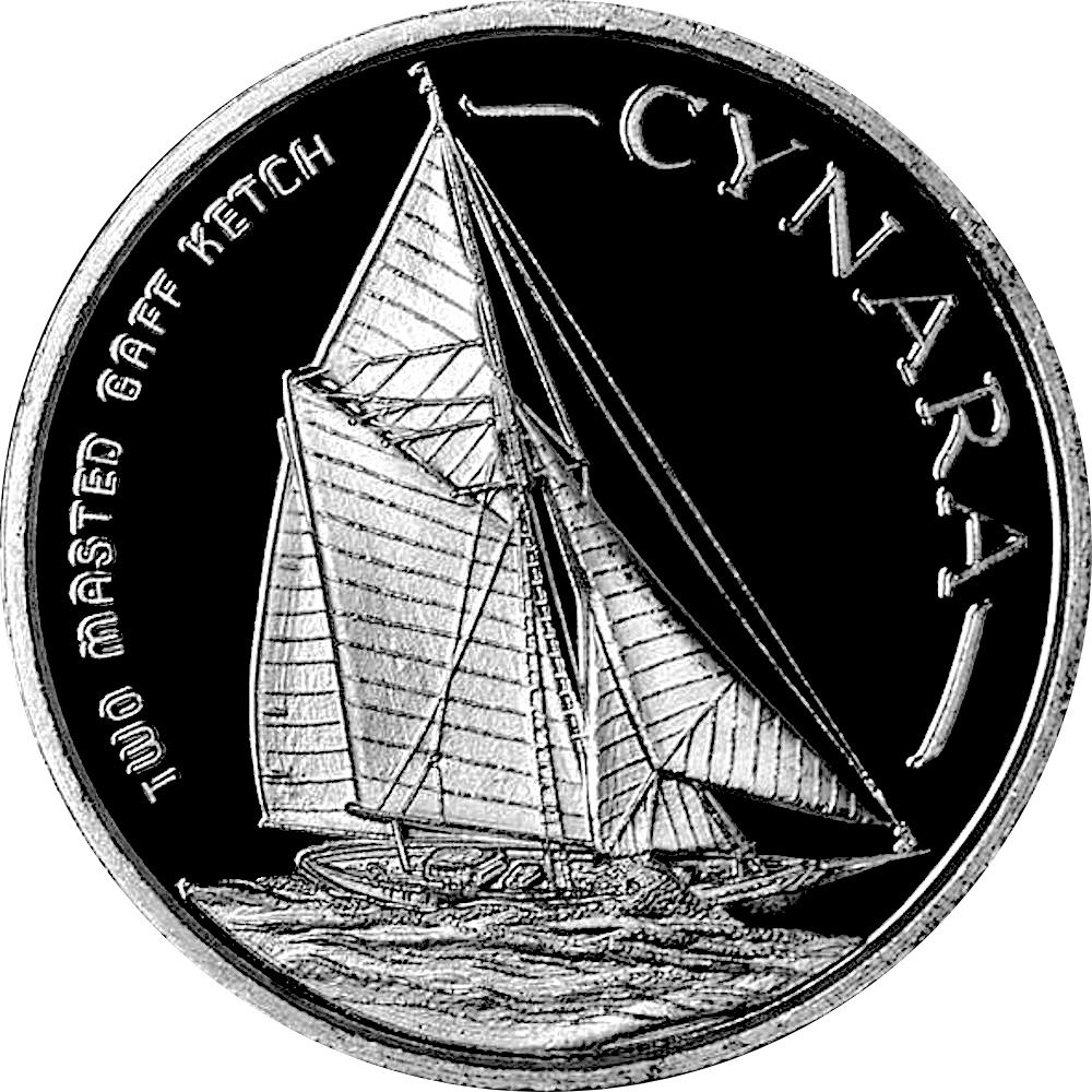 Опис: Двощоглова класична дерев'яна вітрильна гафельна кеч Cynara під повними вітрилами.