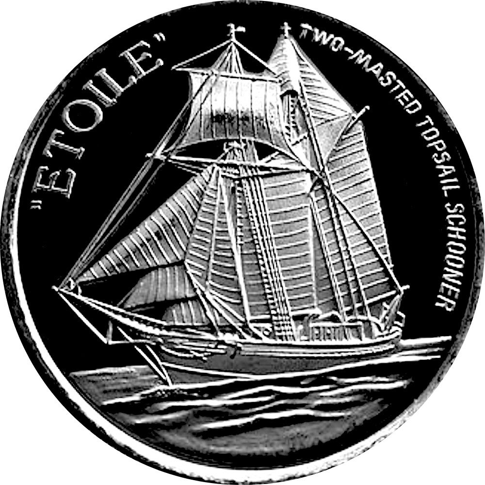 Опис: Двощоглова шхуна французького флоту «Етуаль» під повними вітрилами в океані.