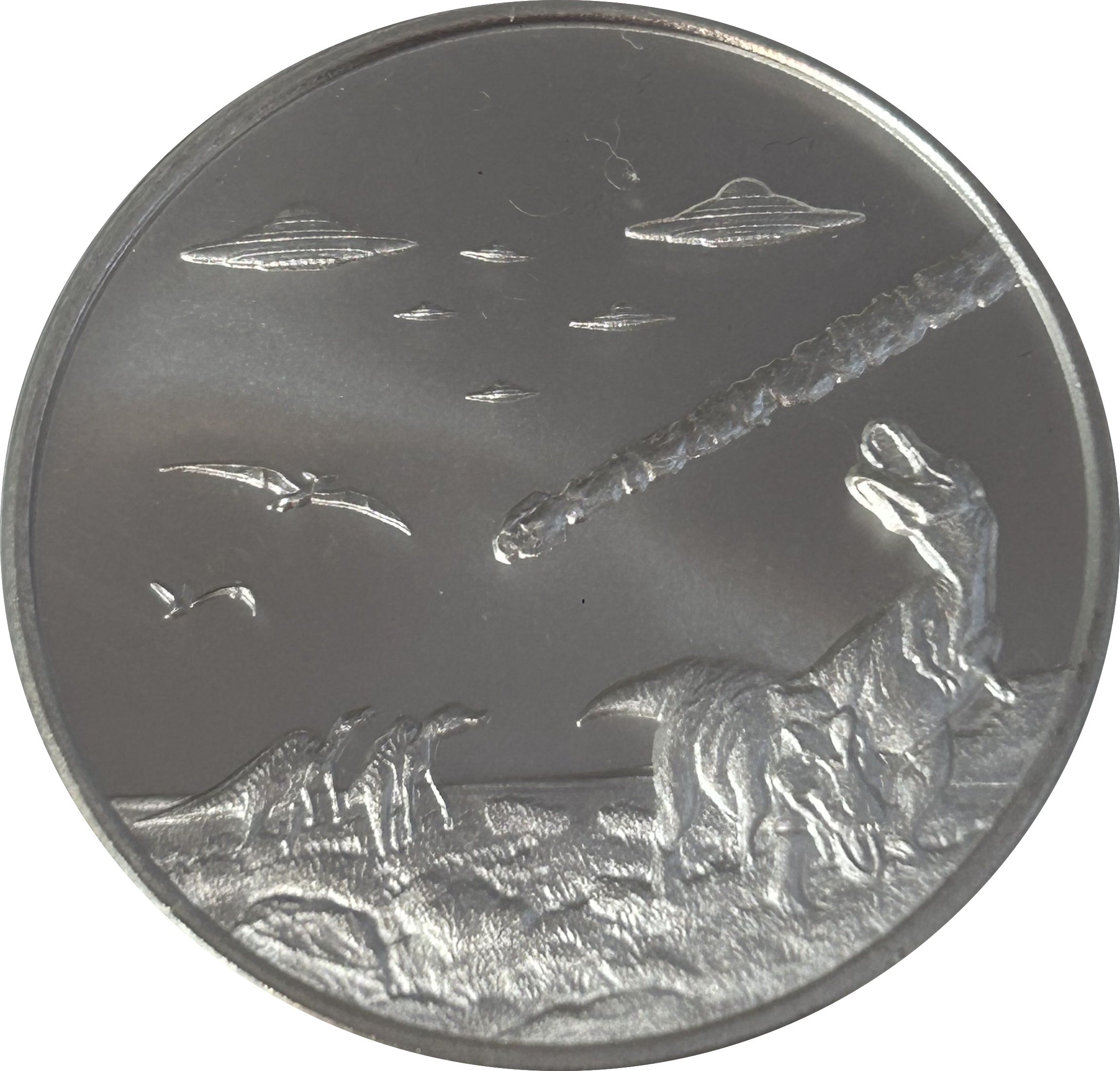 1 унція срібла — монетний двір Intaglio (НЛО над динозаврами) 2023 – 2023 Сполучені Штати