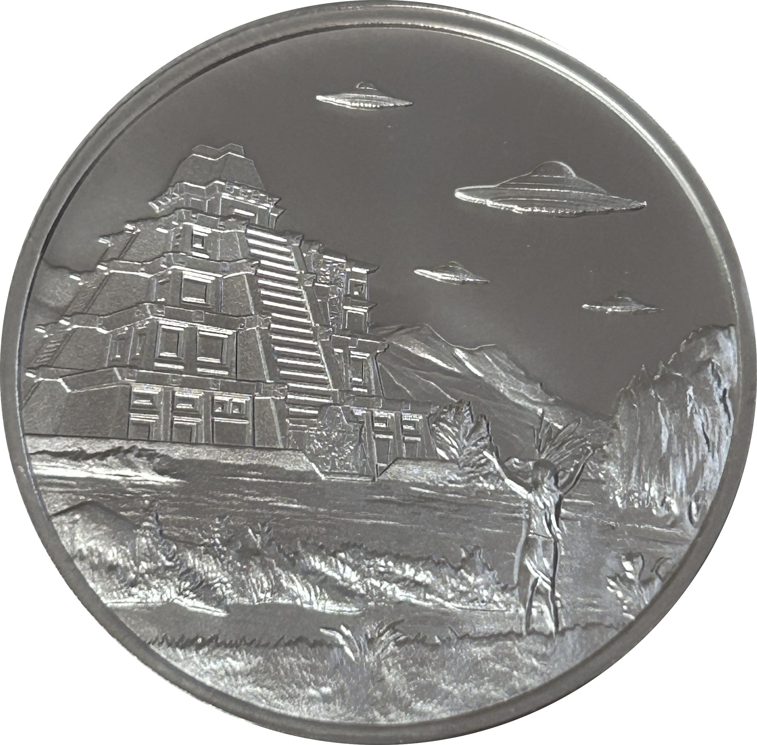 1 унція срібла — монетний двір Intaglio (НЛО над Теотіуаканом) 2023 – 2023 Сполучені Штати