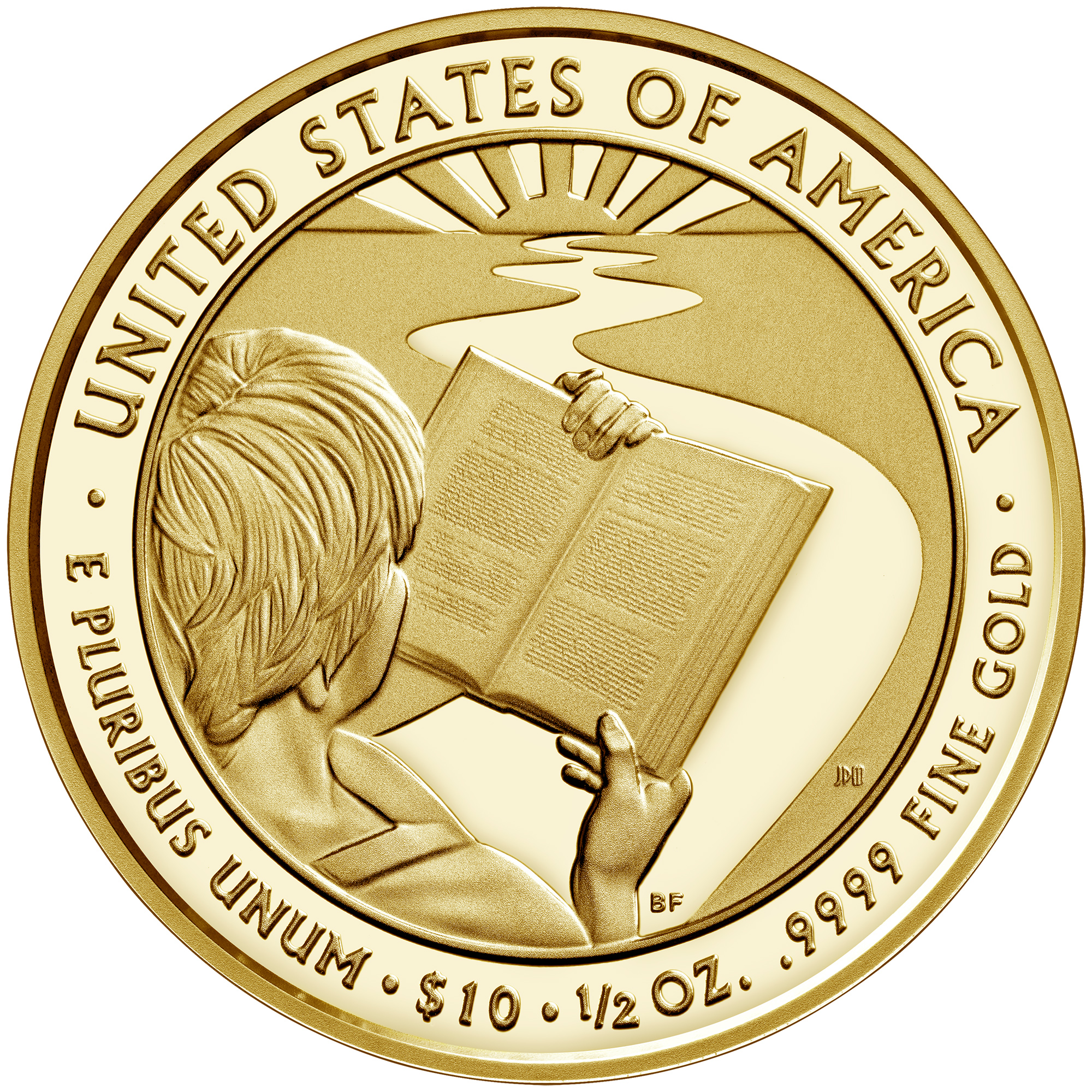 Опис: Вшанування пані Буш за її палке пропагування сімейної грамотності. На дизайні зображено людину, яка читає, а перед нею відкрита дорога. Відкрита книга символізує грамотність, освіту та знання. Дорога символізує майбутнє та життєвий шлях, а сонце вдалині — обіцянку світлого майбутнього.