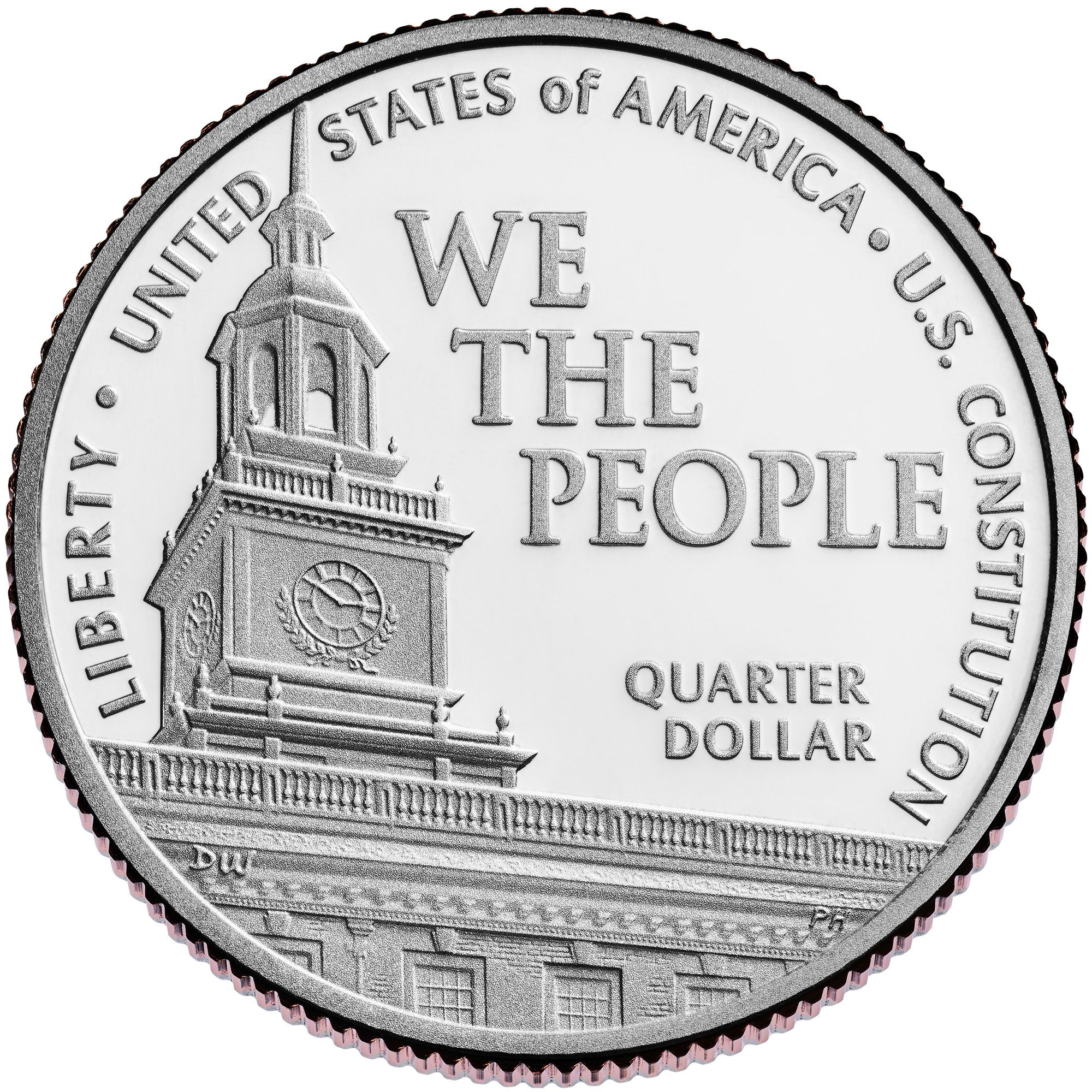 Опис: Зал Незалежності у Філадельфії, де зберігався Дзвін Свободи і де були написані, обговорені та підписані як Декларація, так і Конституція США. Напис «WE THE PEOPLE» («МИ, НАРОД») та зображення Залу Незалежності разом підкреслюють основоположний принцип, викладений у Конституції: а саме, що наш уряд ґрунтується на згоді тих, ким він керує.