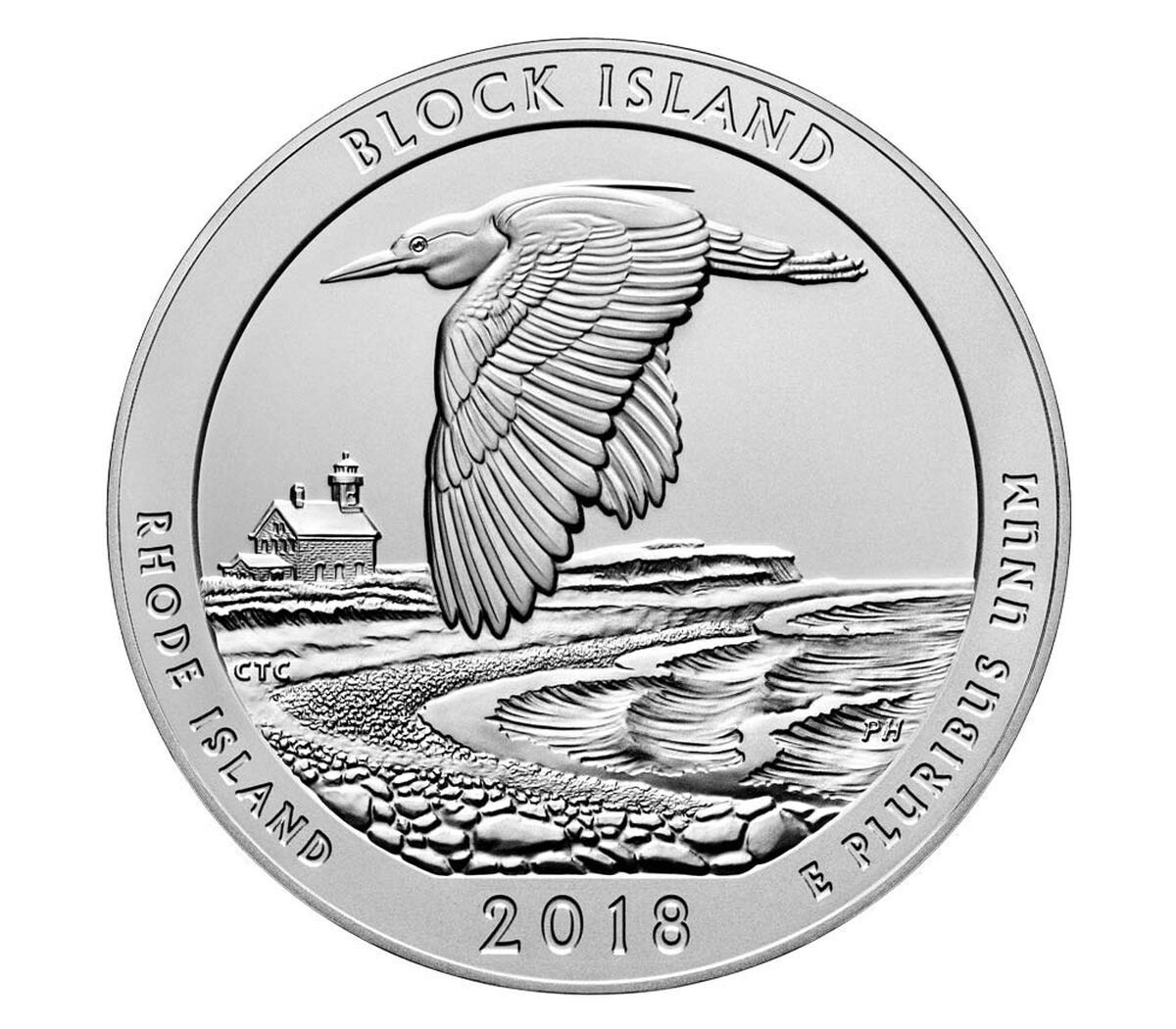 ¼ долара «Вашингтонський чвертьдолар» Національний заповідник «Блок-Айленд» — срібло 5 унцій 2018 – 2018 Сполучені Штати
