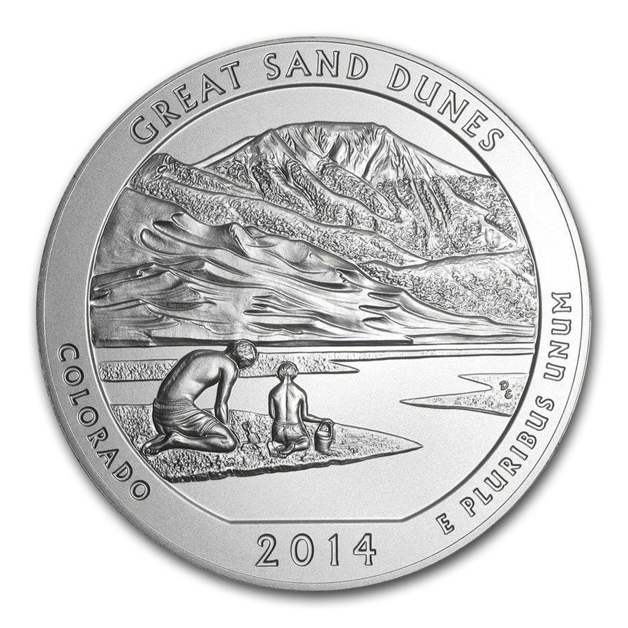 Назва: ¼ долара («Вашингтонський квартал» Великі піщані дюни — Колорадо; срібний зливок 5 унцій)
