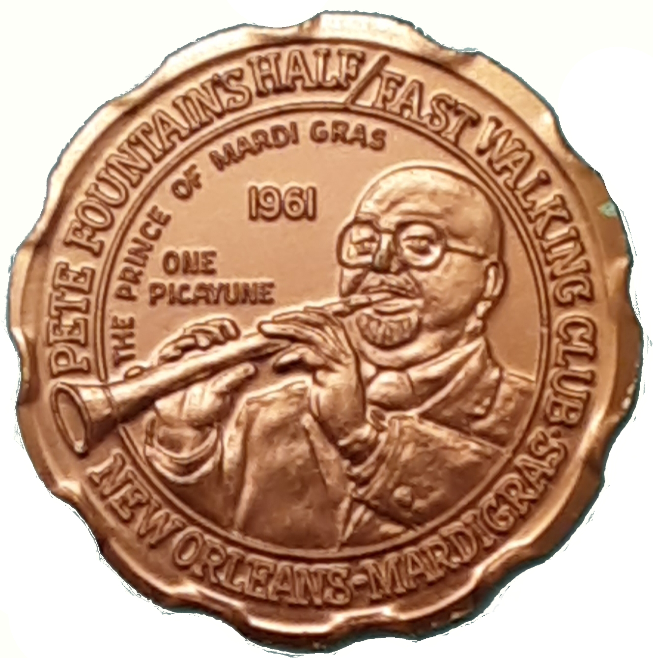 Жетон Марді Гра — Клуб «Half/Fast Walking» Піта Фаунтейна (Французький принц і його моряки; Новий Орлеан, Луїзіана)